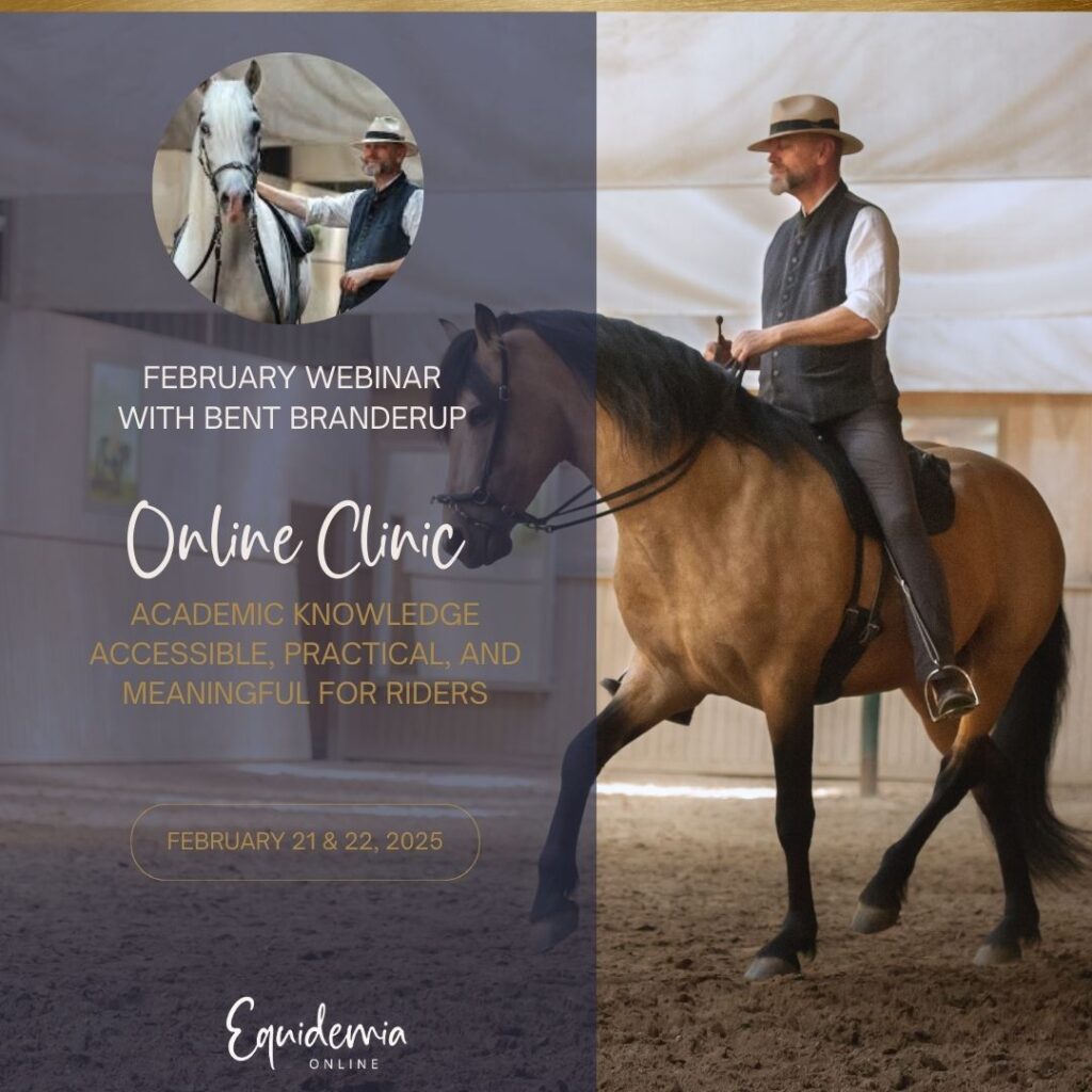 In this online clinic, participants from around the world will share their individual paths within the Academic Art of Riding. Across 24 individual lessons, 3 theory sessions, and 2 live Q&A sessions, Bent Branderup will open new perspectives and insights drawn from his lifelong experience as a horseman and teacher.